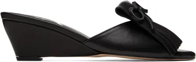 Black Fringe Wedge Mules