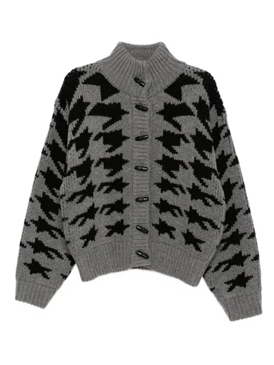Hound's Tooth Star Cardigan In Gray