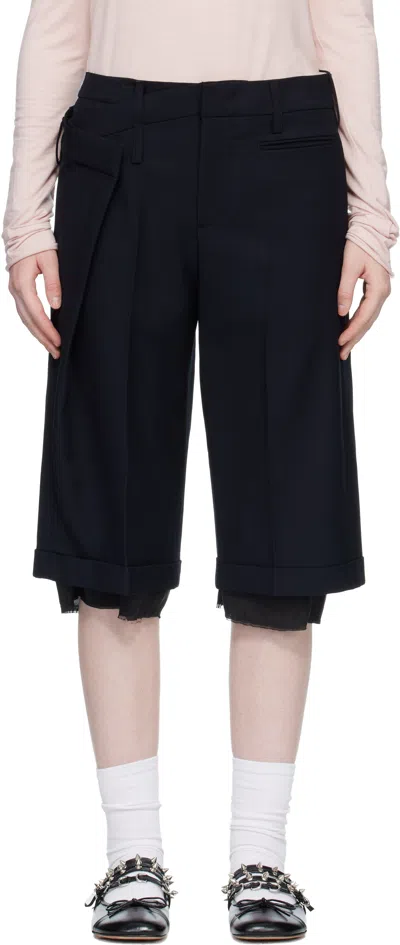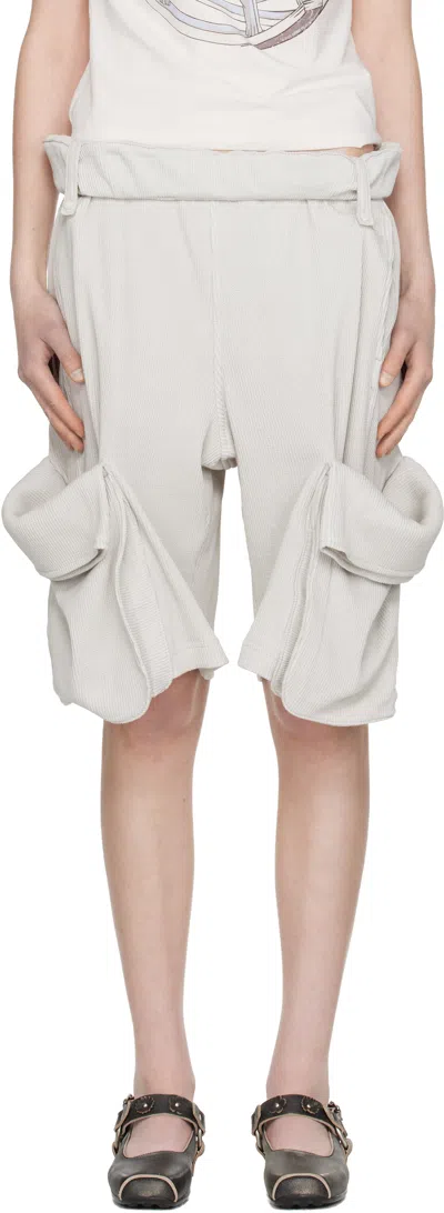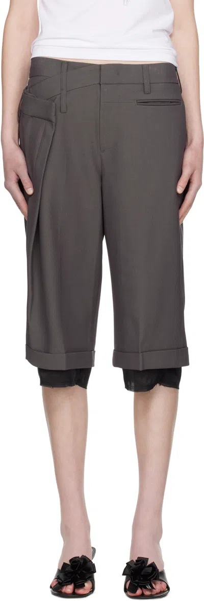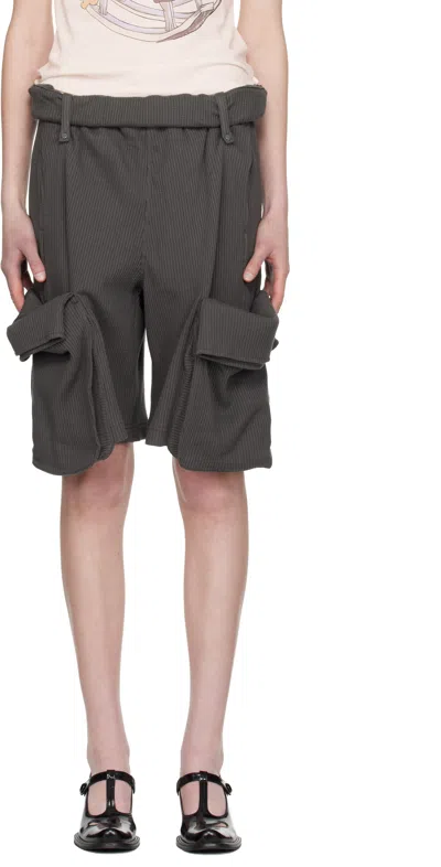 Gray Rolled Waist Sweat Cargo Shorts In Black