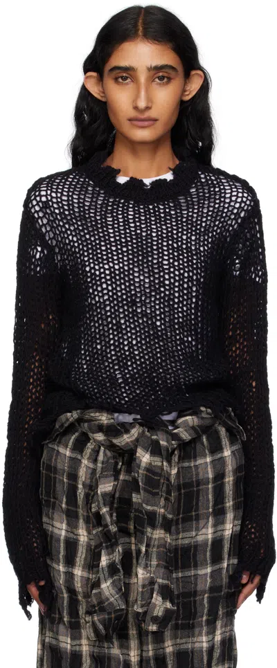 Distressed Cropped Knitted Sweater In Black