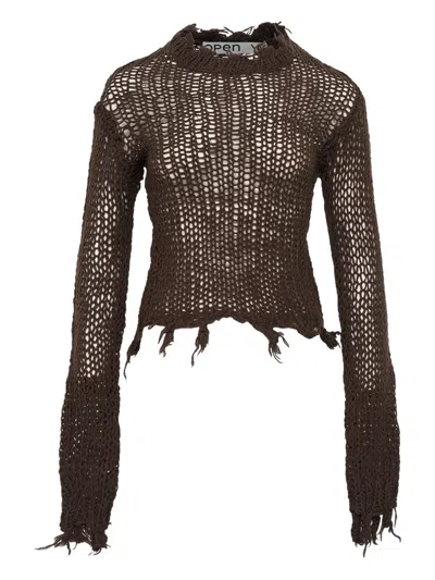 Distressed Crop Knit Sweater In Brown
