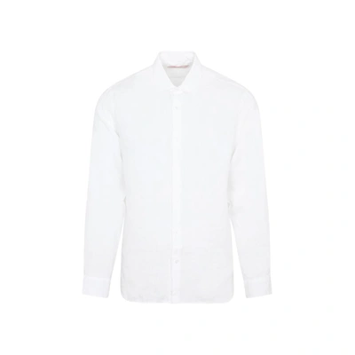 Giles Linen Textured Tailored Fit Button Down Shirt In White
