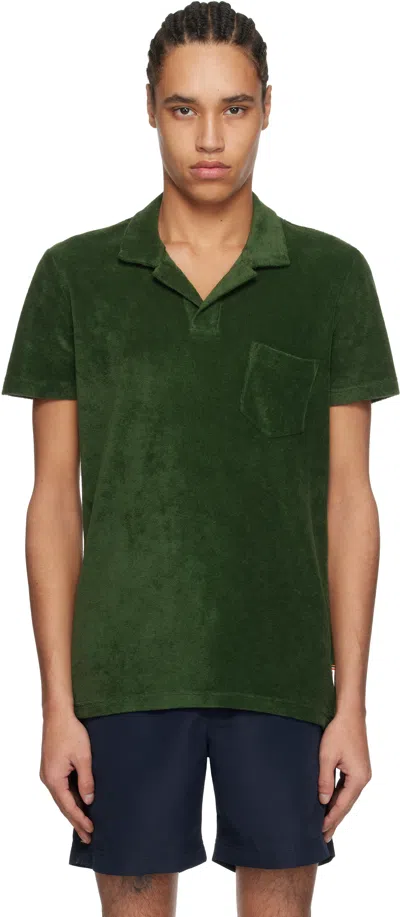 Green Terry Towelling Polo In Amazonian Green