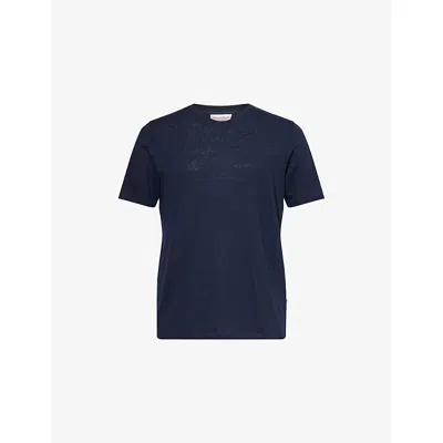 Mens Ob Standard-t Crewneck Stretch-linen Shirt Night Iris Xl In Purple