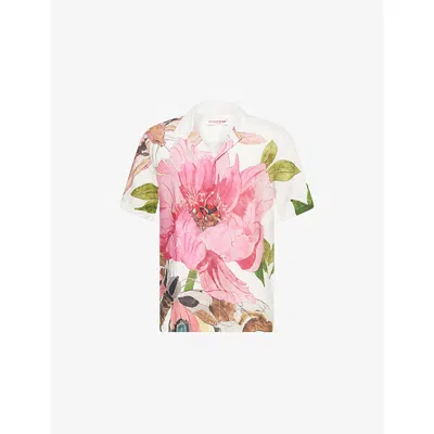Mens Pink Lemonade Maitan Paeonia-print Linen Shirt