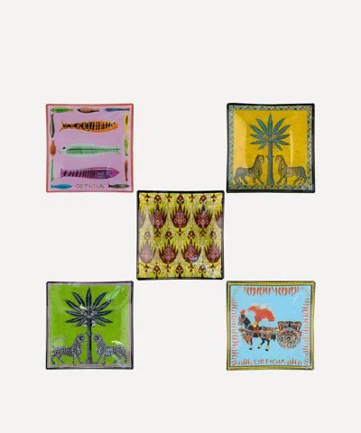 Tin Carretto Glass Sqaure Plates Set Of Five In Multi