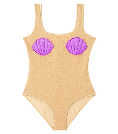 Oséree Kids Lumière Lamé Swimsuit In Pink