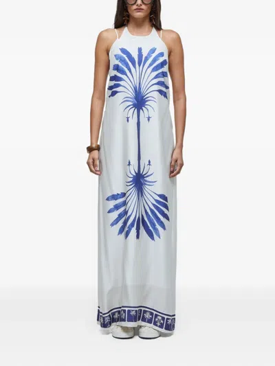 棕树印花超长连衣裙