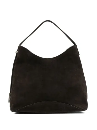 Shell Brot Large Brown Shopper With Two Handles And Key Pendant In Suede Woman In Black
