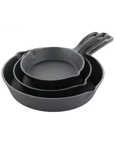 Castaway 3pc Cast Iron Pre-seasoned Frying Pans In Black