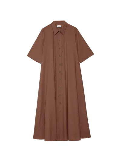 Button Front Shirt Midi Dress In Brown