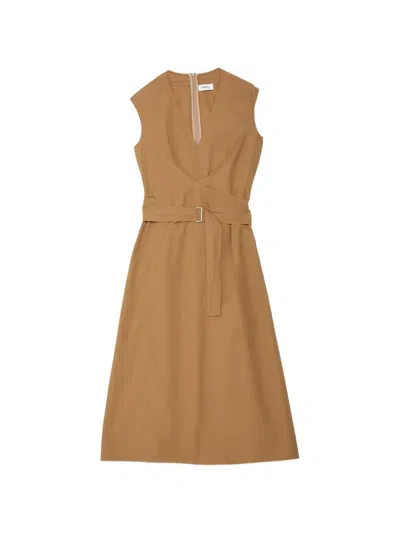 无袖束腰中长连衣裙