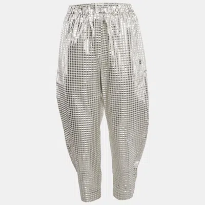 Pre-owned Silver Lurex And Cotton Blend Gingham Trousers S