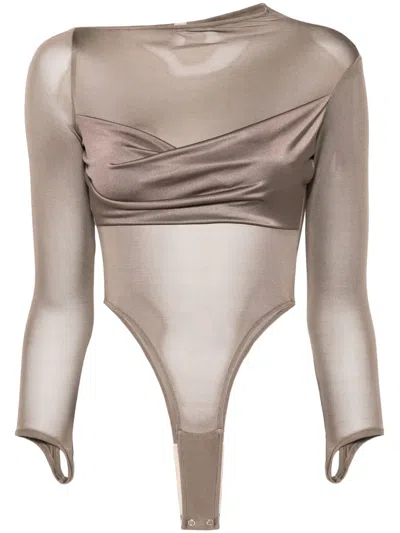 Shoulder-wrap Thread Top In Gray