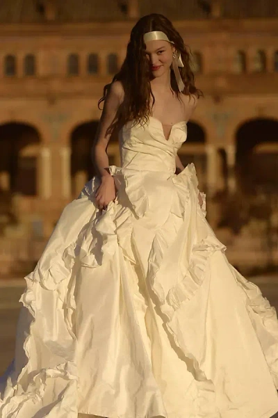 Alix Strapless Taffeta Ruffle Wedding Gown In White