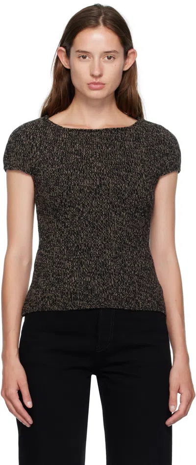 Short Sleeve Crew Neck Cotton Top In Brown
