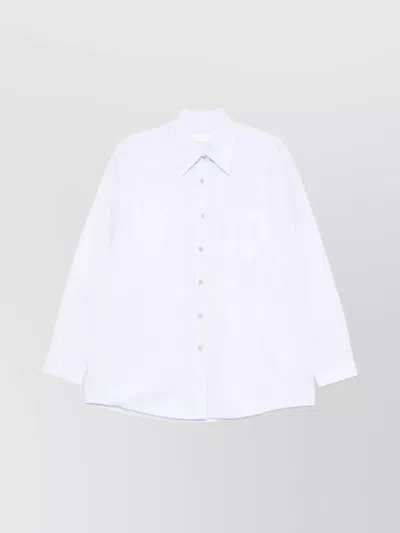 Collar Long Sleeves Pleat Detailing Chest Pocket In White