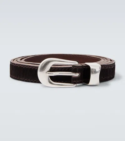 Hair-on Hide Leather Belt In Brown