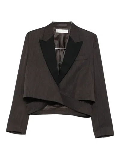 Cropped Wrap Blazer With Textured Fabric In Animal Print