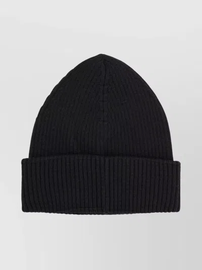 Ribbed Black Merino Wool Cap With Folded Cuff