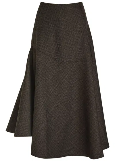 Waltz Asymmetric Wool Midi Skirt In Brown
