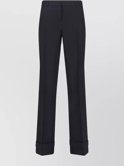 Straight Leg Trousers With Belt Loops And Cuffed Hem In Black