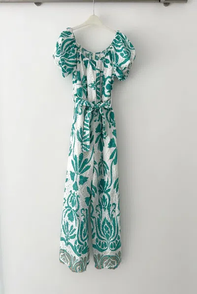 Printed Broderie Anglaise Belted Jumpsuit Turquoise In Neutral