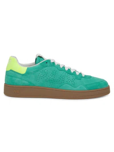 Men's Perforated Suede Low-top Sneakers In Green