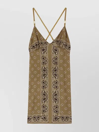 Paisley Print Sleeveless Mini Dress In Military Military