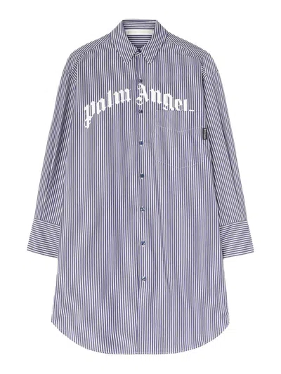 Striped Logo Print Midi Shirt Dress In Navy Blue - Off White