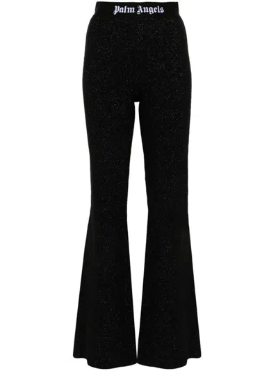Logo-tape Sequins Flare Trousers In Black