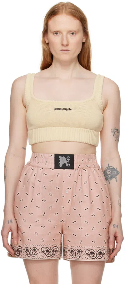 Palm-print Crop Top In Beige