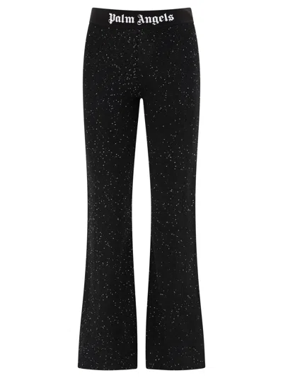 Logo-tape Sequins Flare Trousers In Black