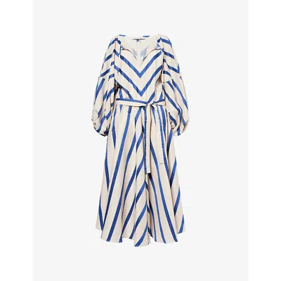 Womens Blue Sonnet Chevron-stripe Linen-blend Midi Dress In Multi