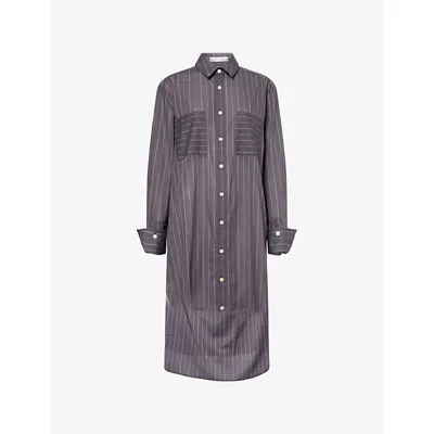 Womens Grey Ease Striped Longline Cotton Shirt In Gray