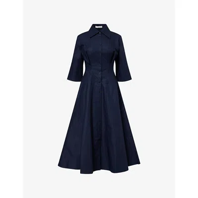 Womens Navy Contour Pleated Cotton Maxi Dress In Blue