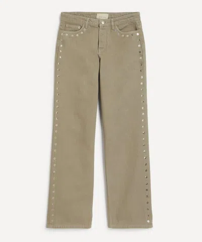 Women's Crowd Studded Boyfriend Denim Trousers In Green
