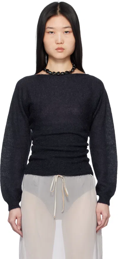 Long-sleeved Knitted Sweater With Round Neckline In Gray