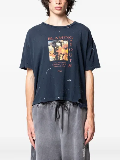 Cotton Sweatshirt With Destroyed Effect In Blue