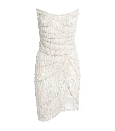 Beaded Strapless Mini Dress In White