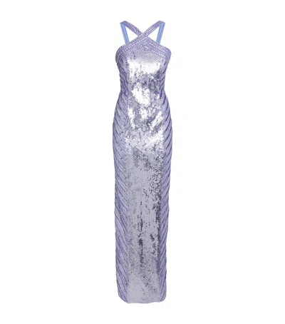 Sequinned Embellished Halterneck Gown In Blue