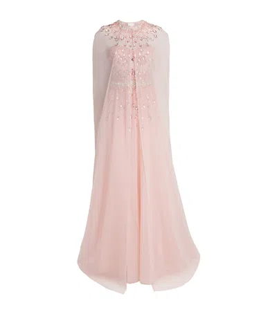 Tulle Embellished Cape-detail Gown In Pink