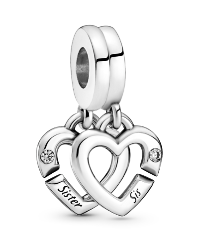 Cubic Zirconia Linked Sister Hearts Split Dangle Charm In Clear
