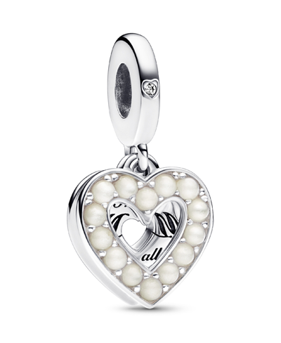 Mixed Stone Pearlescent White Heart Double Dangle Charm
