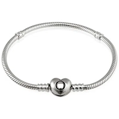 Snake Chain Sterling Silver Bracelet With Heart Clasp In Metallic
