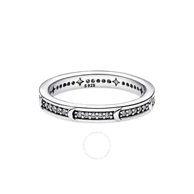 Pave Double Band Sterling Silver Ring In Silver Tone