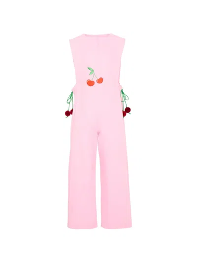 Kids' Cherry-embroidered Jumpsuit In Pink
