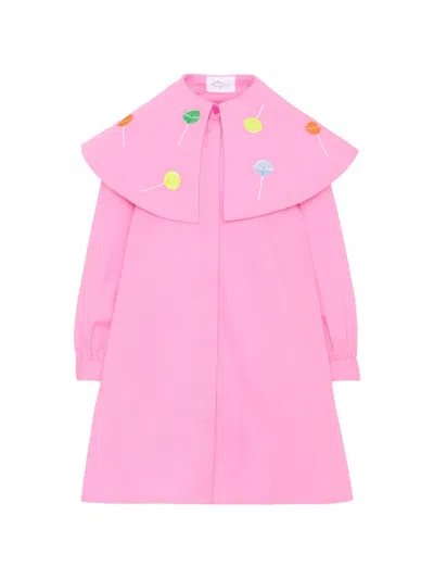 Kids' Lollipop-embroidered Cape-collar Dress In Pink