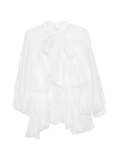 Ruffle-detailed Sheer Blouse In White