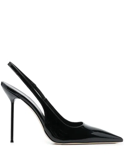 105mm Lidia Patent Leather Slingbacks In Black